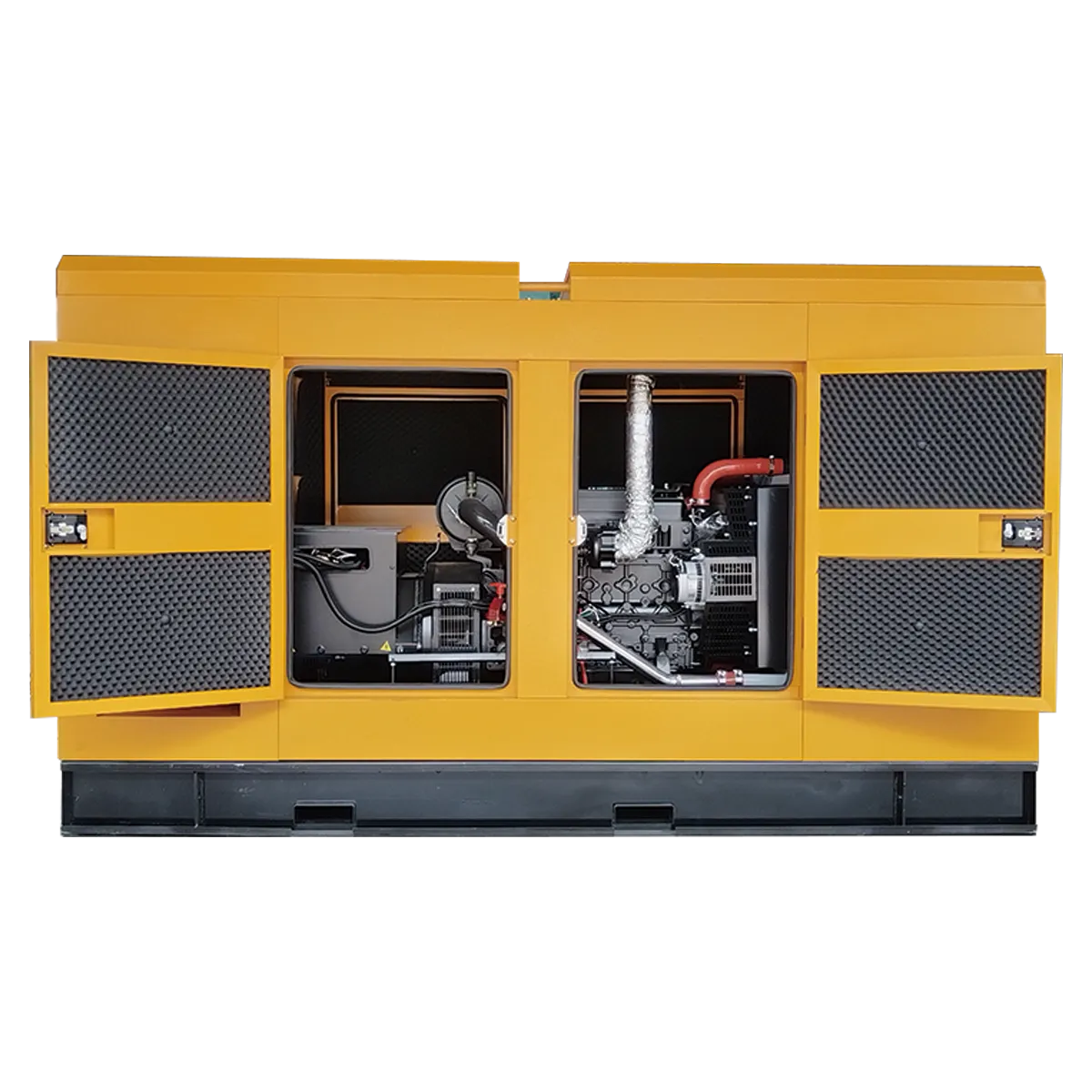 Всепогодный звукоизолированный кожух с безэховой камерой. Выхлопная система размещена в специальной безэховой камере внутри кожуха. Диапазон рабочих температур: от -10°C до +40°C; с установленным отопителем диапазон рабочих температур: от -40°C до +40°C.
